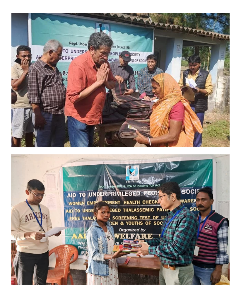 Thalassemia awareness camp organized in the district of Purulia on January 10, 2026 where the speech on prevention and care for thalassemia patient was delivered in Santhali language by Mutru Baskey followed by new blanket distribution among underprivileged aged & ailed people of remote villages of Ajodhya hill top by Chiranjib Goswami, Secretary, Arup Kumar Pal, Assistant Secretary, Sudip Chatterjee, Treasurer & Raja Chakraborty the member of organization.